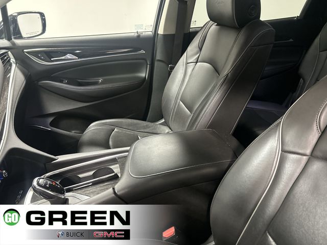 This Enclave Avenir includes seven passenger seating perforated leather appointed seats heated and ventilated front seats heated steering wheel memory package four way power lumbar adjustment for both front seats and front bucket seating. The Avenir Package features high grade materials premium stitching and an upgraded interior environment. The cabin also includes a power moonroof with a rear fixed skylight automatic temperature control dual zone climate control and a power liftgate.