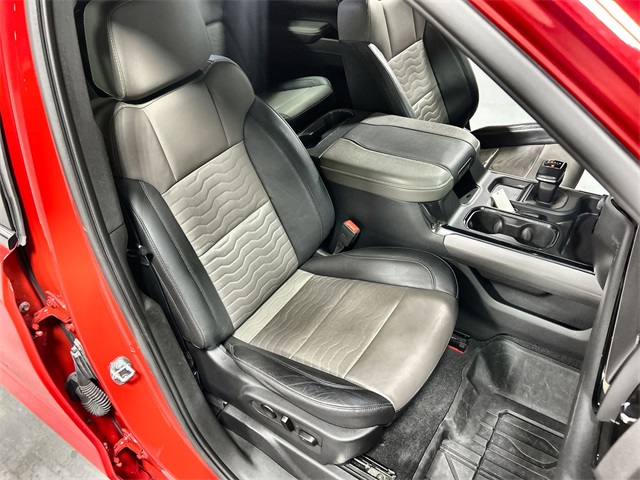 Premium features include ZR2 Suspension Package perforated leather seating heated and ventilated front seats heated rear seats heated steering wheel and dual-zone automatic climate control. Technology highlights include a 12.3-inch multicolor digital display 15-inch head-up display Chevrolet Infotainment 3 Premium System with navigation Apple CarPlay Android Auto wireless charging and a premium Bose 7-speaker sound system. Safety features include Adaptive Cruise Control Automatic Emergency Braking HD Surround Vision Rear Cross Traffic Alert Lane Keep Assist and Trailer Side Blind Zone Alert. Additional amenities include Chevytec spray-on bedliner EZ Lift power lock and release tailgate Multi-Flex tailgate trailering package integrated trailer brake controller and 18-inch gloss black wheels.