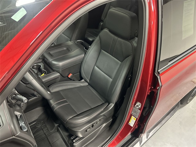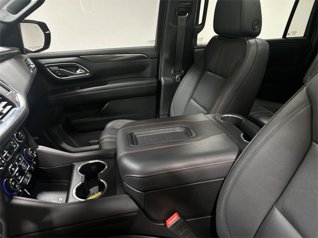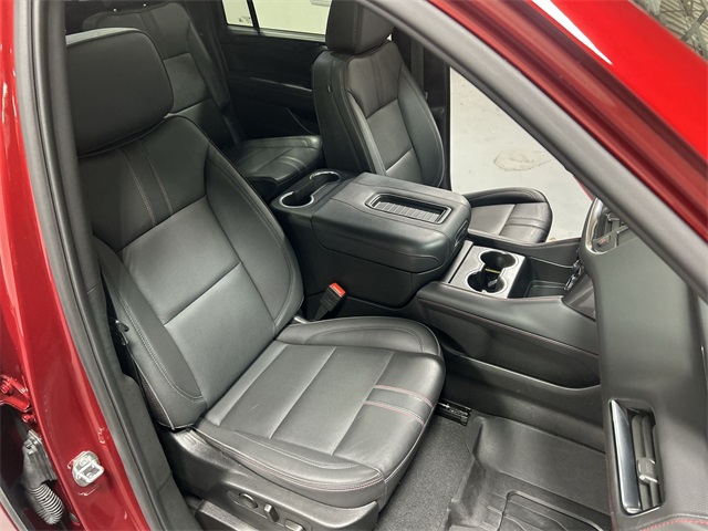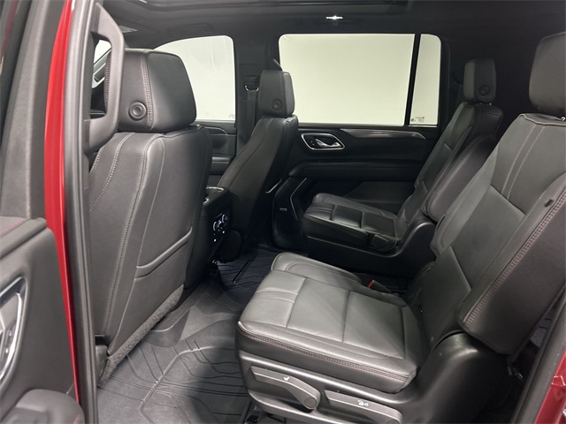 This Suburban RST includes the premium features Quad Cities buyers expect in a full size SUV. Equipment highlights include 10 way power driver and passenger seat adjusters memory settings perforated leather seating surfaces heated front seats heated second row outboard seats heated steering wheel dual pane power panoramic sunroof hands free rear power programmable liftgate power release second row bucket seats third row 60 40 power folding split bench seats and color keyed carpeted floor mats.