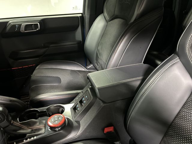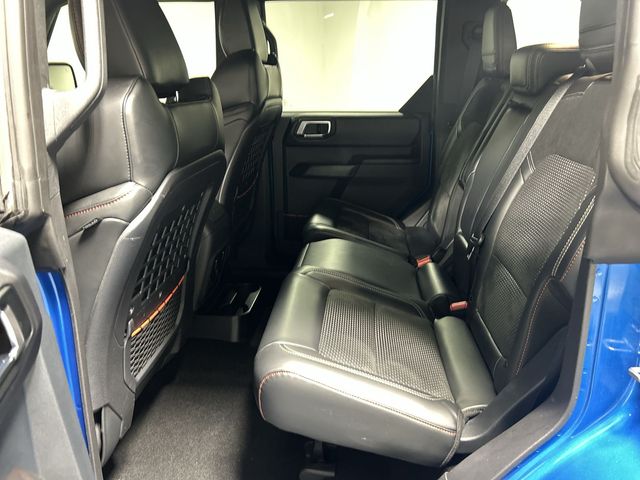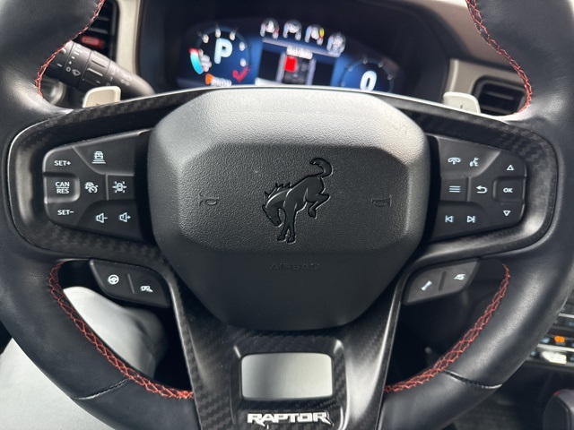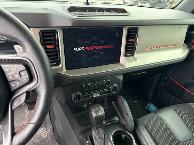 This Bronco Raptor includes the desirable Equipment Group 374A High Lux Package along with a body color painted hard top connected navigation SYNC 4 the B and O Sound System by Bang and Olufsen heated front seats a heated steering wheel leather trimmed vinyl bucket seats dual zone automatic climate control active cruise control and hard top sound deadening headliner. You also get advanced visibility and safety features including exterior parking camera rear auto high beam headlights front fog lights fully automatic headlights and a rear window defroster and washer. The 17 inch black high gloss painted aluminum wheels complete the look and enhance overall capability.