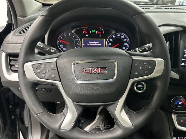 This 2024 GMC Terrain SLT features a 1.5L DOHC engine, a 9 speed automatic transmission, and all wheel drive for confident traction year round. Interior comfort includes perforated leather appointed seats, heated steering wheel, an 8 way power driver seat with lumbar control, a 6 way power front passenger seat, memory seat settings, front bucket seats, and dual zone automatic climate control.